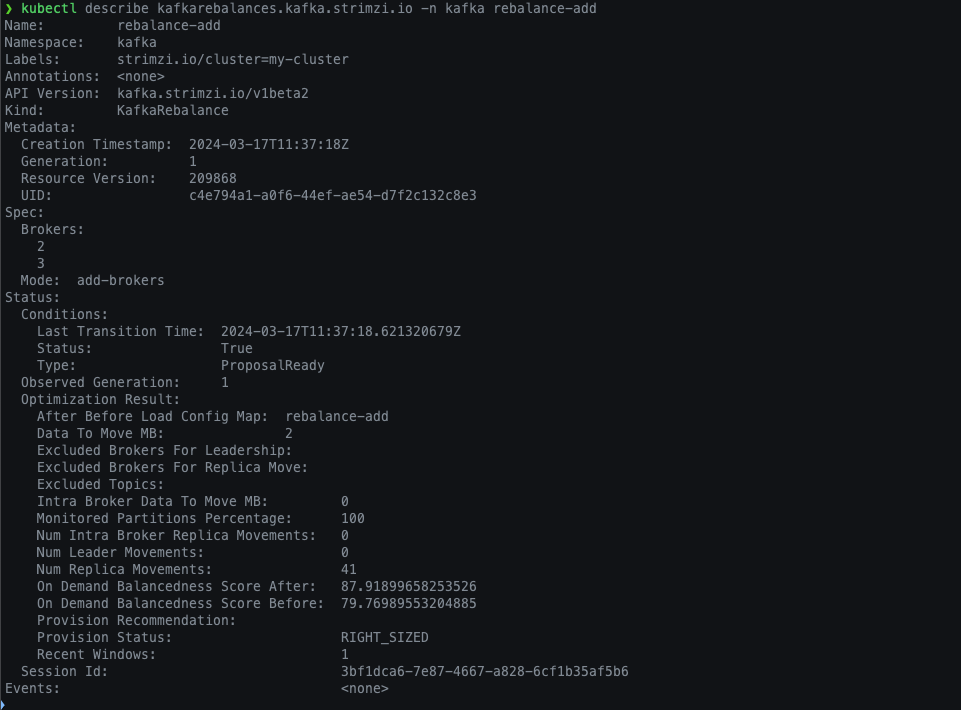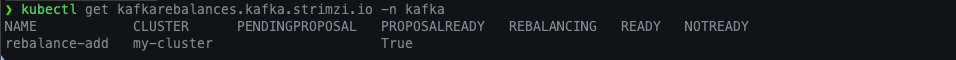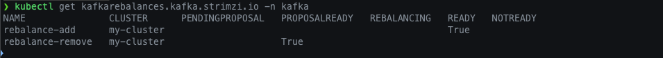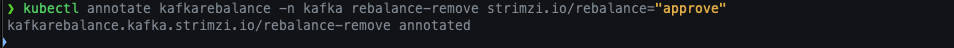 > kubectl annotate kafkarebalance -n kafka my-rebalance strimzi.io/rebalance="approve"