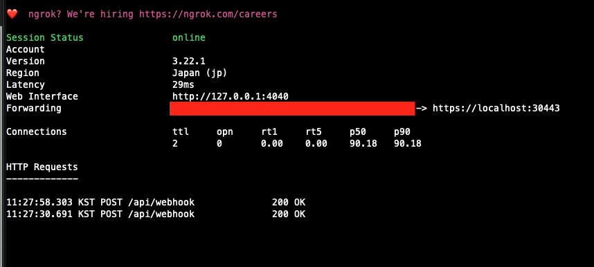 실제 현업에서는 Ngrok을 사용하지 않고 Cloud의 네트워크 설정을 통해 진행합니다.