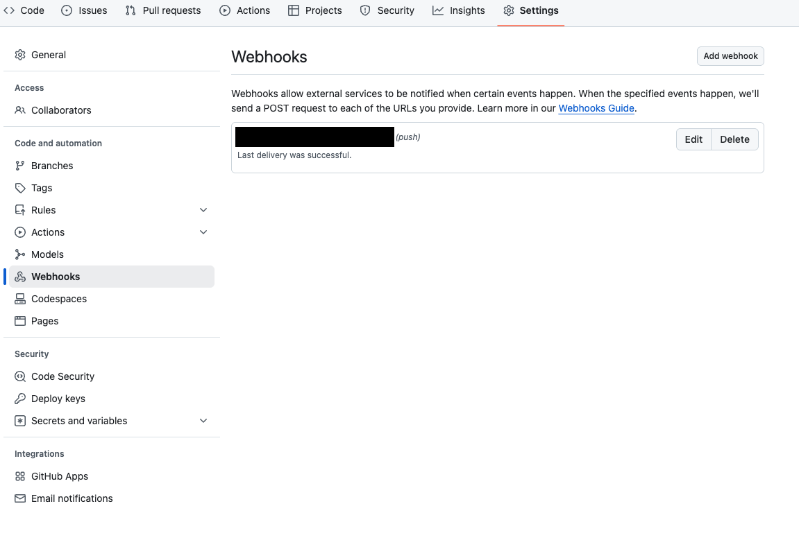 webhook생성이 정상적으로 되었다면 다음과 같이 successful이란느 문구가 출력됩니다.