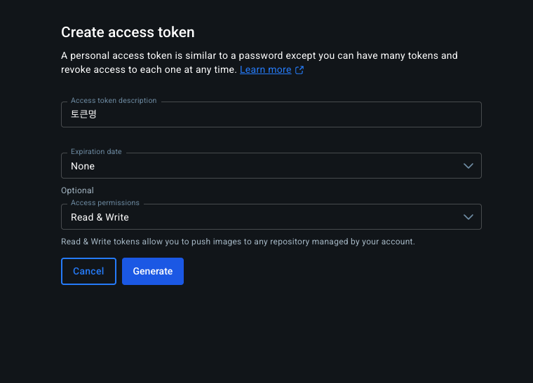 생성된 token은 복사하여 저장합니다. 나중에 다시 확인할 수 없기 때문에 꼭 복사하여 저장합니다.