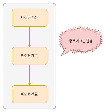 이런 흐름에서 Graceful Shutdown이 구현되어 있지 않다면 문제가 발생할 수 있습니다. 애플리케이션이 데이터를 수신한 직후, 가공 작업이나 저장 작업이 수행되는 중간에 종료 신호(SIGTERM 등)가 들어오면, 해당 작업이 끝까지 처리되지 못한 채 중단됩니다. 이로 인해 가공 중이던 데이터가 유실되거나, 데이터베이스에 반영되어야 할 정보가 정상적으로 저장되지 못해 데이터가 불일치하는 문제가 발생할 수 있습니다. 그러므로 Graceful Shutdown은 서비스 안정성, 데이터 무결성, 외부 시스템과의 정상적인 종료 절차를 보장하기 위한 중요한 기능이라고 할 수 있습니다.