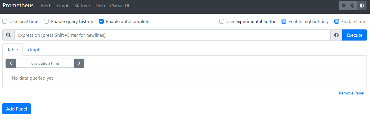 Prometheus의 기본 Port번호는 9090입니다. 브라우저를 통하여 'localhost:9090'을 입력합니다.