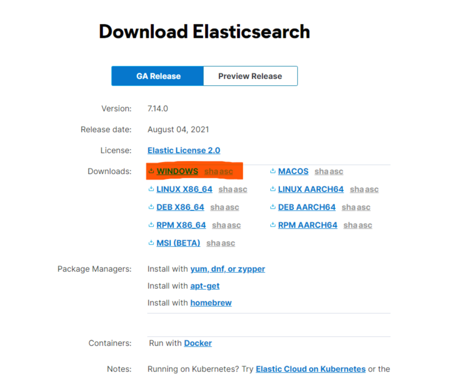 https://www.elastic.co/kr/downloads/elasticsearch 해당 주소에서 elasticsearch를 다운로드합니다.