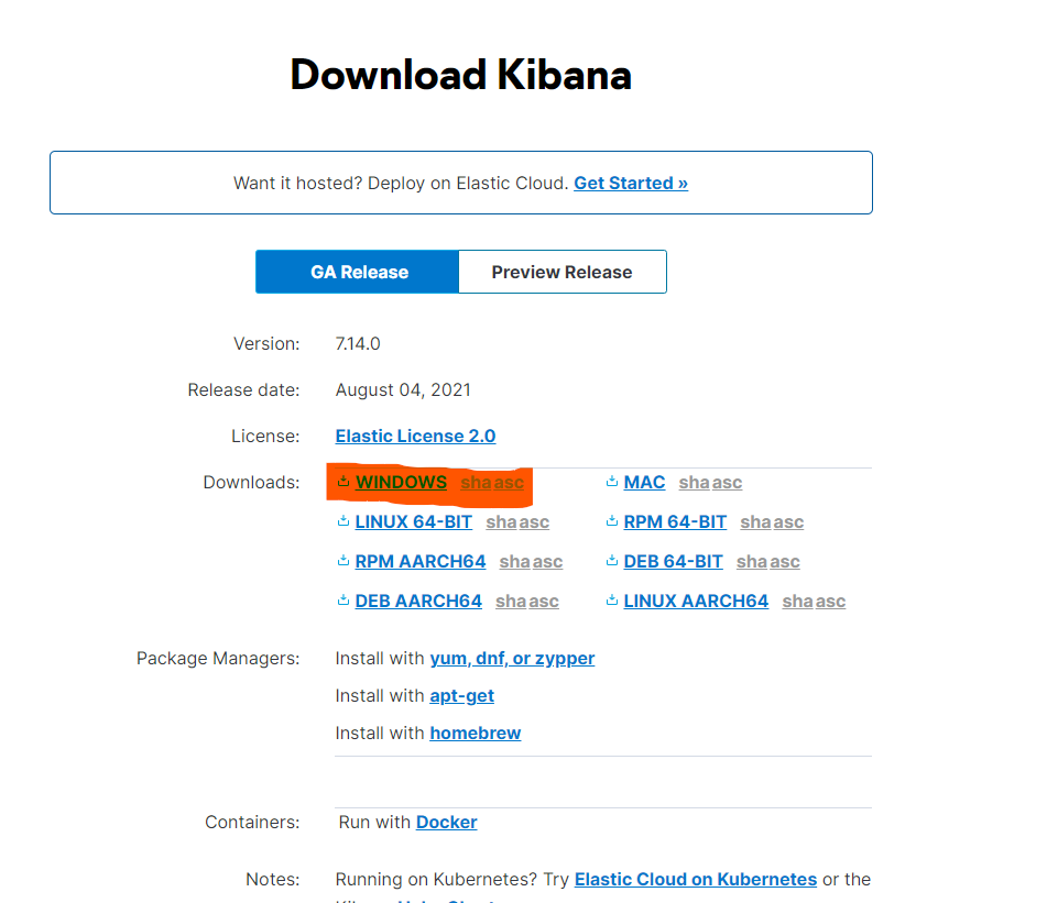 https://www.elastic.co/kr/downloads/kibana 링크에서 파일을 다운로드합니다.
