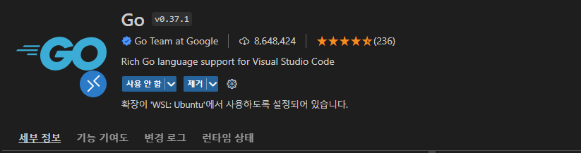 환경 구성은 매우 간단합니다. vscode extension에서 "go"라고 검색하여 해당 extension을 설치합니다.