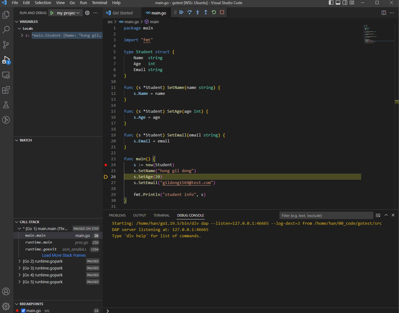 요즘 code editor를 vscode로 변경하면서 debug환경에 대한 설정을 진행하였습니다. 이 글의 목적은 간단하게 go언어 디버깅 환경을 구축하며, vscode의 debug 단축키 및 사용법에 대한 내용을 정리하였습니다.