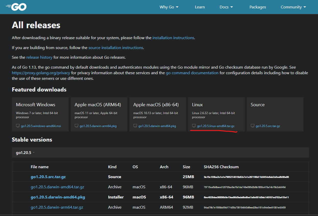 2. go 공식 사이트에서 새로운 go 버전 다운로드