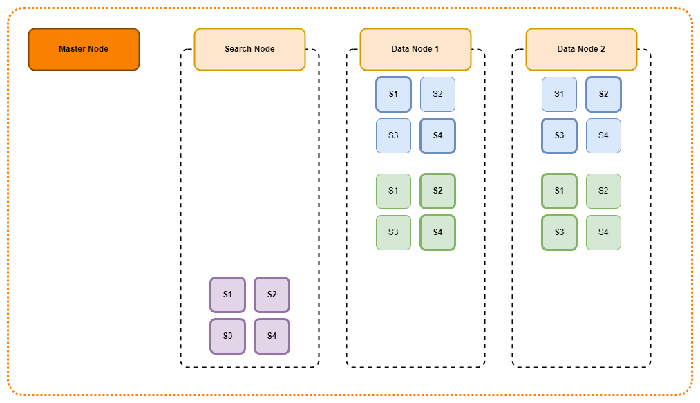 Master Node는 Opensearch의 클러스터를 관리하는 역할을 수행하며 Data Node는 실제 데이터가 저장되고 연산 기능을 수행합니다. Search Node는 Snapshot으로 부터 인덱스 데이터를 가져와 데이터를 검색할 수 있는 기능을 제공합니다.
